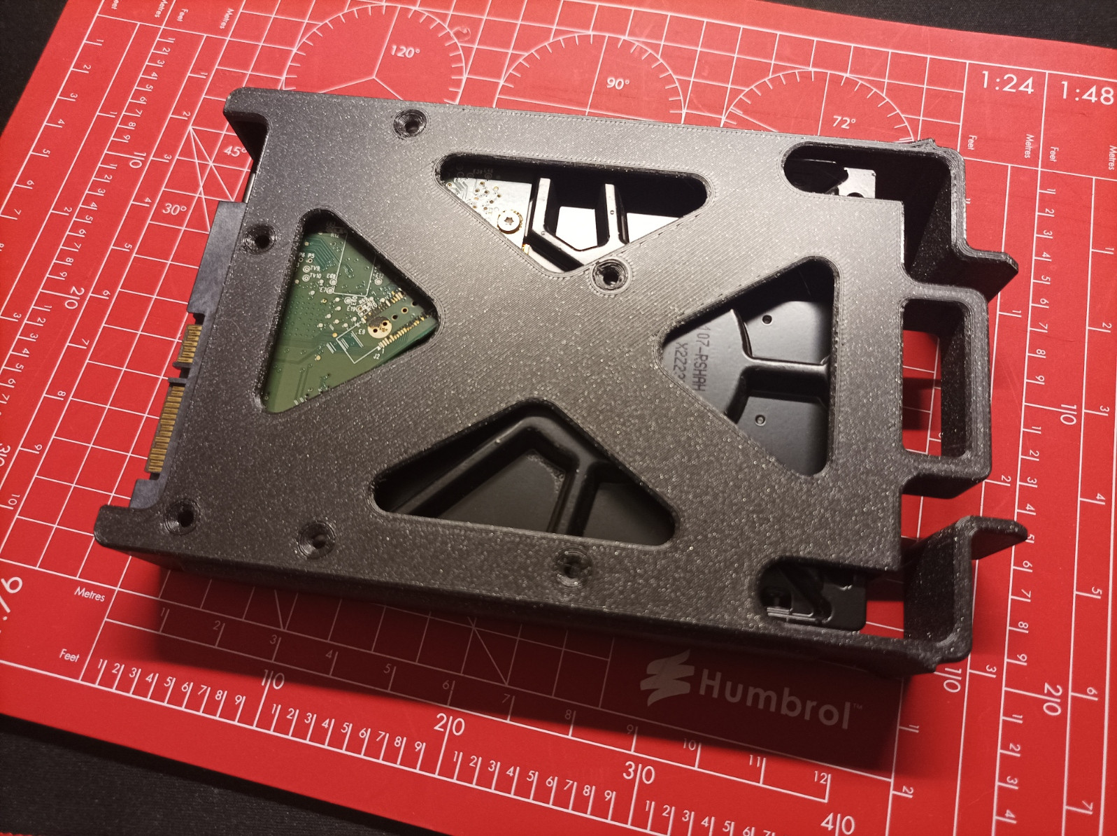 Obudowa od Salim'a nie nadaje się do użytku przez mnie 1:1. Po pierwsze cała elektronika jest inna (micro-ATX zamiast ZimaBoard), a po drugie nie mam tak dużej drukarki żeby części drukować w jednym kawałku. Prusa Mini ma pole wydruku 18x18cm, Bambu 25x25cm.