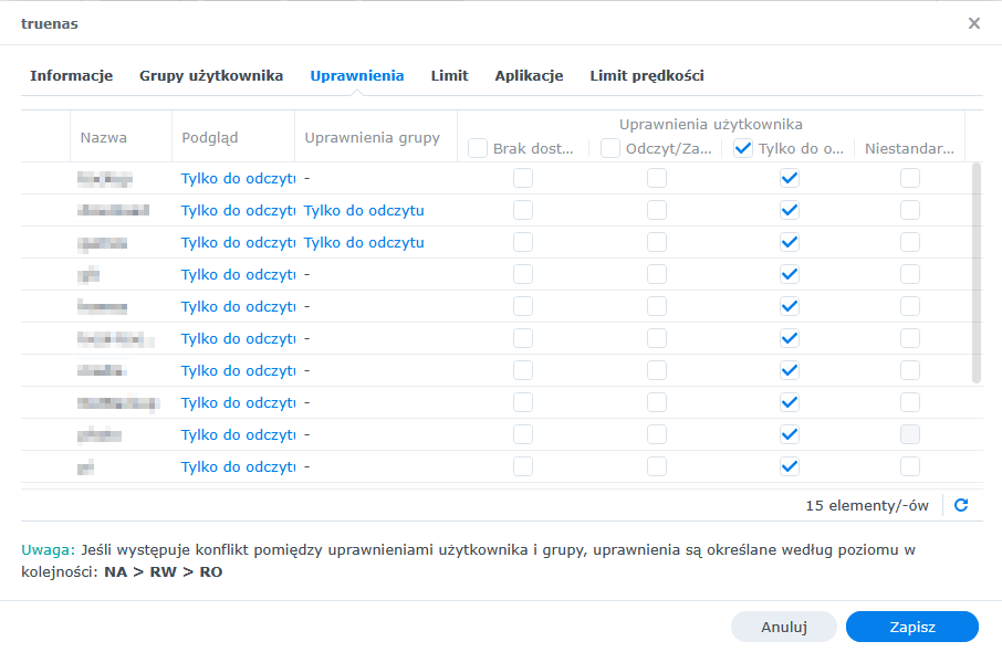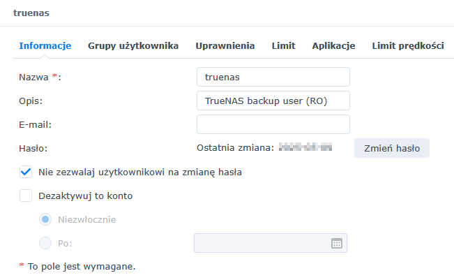 Następnie trzeba utworzyć użytkownika z prawami tylko do odczytu do backupowanych zasobów.